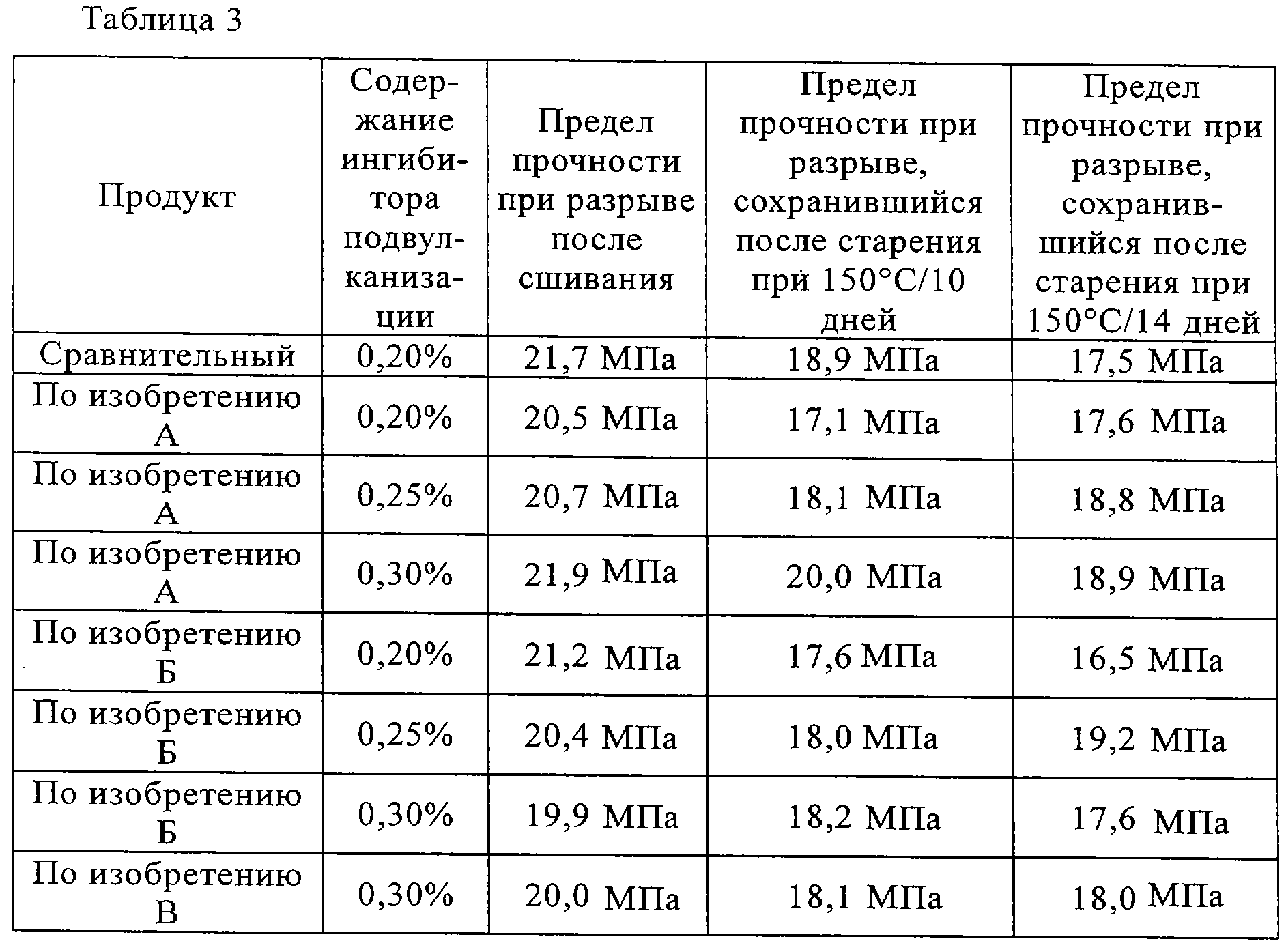 Смесь включает ароматические амины в следующих количествах: не более 5 мас% дифениламина (а), от 8 до 15 мас.% 4-трет-дибутилдифениламина (б), от 24 до 32 мас% соединений, выбранных из ряда (в), (в)(I) 4-трет-октилдифениламин (в)(II) 4,4′-дитрет-бутилдифениламин (в)(III) 2,4,4′-тристрет-бутилдифениламин от 23 до 34 мас.% соединений, выбранных из ряда (г), (г)(I) 4-трет-бутил-4′-трет-октилдифениламин (г)(II) о,о’-, м,м’- или п,п’-дитрет-октилдифениламин (г)(III) 2,4-дитрет-бутил-4′-трет-октилдифениламин и от 21 до 34 мас.% соединений, выбранных из ряда (д), (д)(I) 4,4′-дитрет-октилдифениламин (д)(II) 2,4-дитрет-октил-4′-трет-бутилдифениламин, в каждом случае в пересчете на общее количество аминов. Предпочтительным амином является 4,4′-дитрет-октилдифениламин или амин (А), который представляет собой смесь 3 мас.% дифениламина, 14 мас.% 4-трет-бутилдифениламина, 30 мас.% (4-трет-октилдифениламина, 4,4′-дитрет-бутилдифениламина и 2,4,4′-тристрет-бутилдифениламина), 29 мас% (4-трет-бутил-4′-трет-октилдифениламина, о,о’-, м,м’- или п,п’-дитрет-октилдифениламина и 2,4-дитрет-бутил-4′-трет-октилдифениламина), 18 мас.% 4,4′-дитрет-октилдифениламина и 6 мас.% 2,4-дитрет-октил-4′-трет-бутилдифениламина. Примерами смесей, пригодных для использования в качестве ингибиторов подвулканизации, являются: амин (А) и фенол (Р) 4,4′-дитрет-октилдифениламин и фенол (Р) 4,4′-дитрет-октилдифениламин и фенол (S) амин (А) и фенол (U) амин (А) и фенол (V) амин (А) и фенол (W) амин (А) и фенол (X) Массовое соотношение между амином и фенолом составляет от 4 до 5:1. Особенно приемлемым жидким ингибитором подвулканизации является смесь 80 мас.% 4,4′-дитрет-октилдифениламина и 20 мас.% фенола Р. Соединения формул I, II и III получают по способам, которые известны и описаны в US 4759862 или US 4857572 (для формулы I) или US 5008459 (для формул II и III). Понятие “полиэтилен” в настоящем описании использовано для обозначения гомополимера этилена или сополимера этилена с небольшим количеством одного или нескольких альфа-олефинов, каждый из которых включает от 3 до 12 углеродных атомов, а предпочтительно от 4 до 8 углеродных атомов, и необязательно диена или смеси или сочетания таких гомополимеров и сополимеров. Смесью может служить приготовленное механическим путем сочетание или сочетание, полученное in situ. Примерами альфа-олефинов являются пропилен, 1-бутен, 1-гексен, 4-метил-1-пентен и 1-октен. Полиэтилен может также представлять собой сополимер этилена и ненасыщенного сложного эфира, такого, как виниловый сложный эфир, например винилацетат, эфир акриловой или метакриловой кислоты. Подходящими полиэтиленами являются так называемые полиэтилены высокого давления. Технически доступно множество таких полимеров. Предпочтительные полиэтилены высокого давления представляют собой гомополимеры этилена, плотность которых находится в интервале от 0,910 до 0,930 г/см3. Индекс расплава такого гомополимера также может находиться в интервале от примерно 1 до примерно 5 г/10 мин, а предпочтительный индекс расплава находится в интервале от примерно 0,75 до примерно 3 г/10 мин. Индекс расплава определяют по стандарту ASTM D-1238. Сшивающими агентами служат органические пероксиды, включая диалкилпероксиды, такие, как дикумилпероксид, дитрет-бутилпероксид, трет-бутилкумилпероксид, 2,5-диметил-2,5-ди(трет-бутилперокси)гексан, 2,5-диметил-2,5-ди(трет-амилперокси)гексан, 2,5-диметил-2,5-ди(трет-бутилперокси)гексан-3