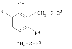 в которой R1 обозначает С1-С20 алкил или С1-С20-алкил, который замещен фенилом, С2-С20 алкенил, С3-С20алкинил, С5-С9 циклоалкил, фенил или толил; R2 и R3 каждый независимо друг от друга обозначает: С1С20алкил или C1-С20 алкил, который замещен следующими радикалами: фенил, один или два гидроксила, цианогруппа, формил, ацетил, -O-COR5; R5 обозначает С1-С20алкил; С2-С20алкенил или С3-С20алкинил; С5-С7циклоалкил или С5-С7циклоалкил, который замещен гидроксилом; фенил, 4-хлорфенил, 2-метоксикарбонилфенил, п-толил, 1,3-бензтиазол-2-ил или -(CHR6)nCOOR7 или -(CHR6)nCONR8R9, где n обозначает 1 или 2, R6 обозначает водородный атом или C1-С6алкил, R7 обозначает С1-С20алкил, С1-С20алкил, который прерывается, включая от одного до пяти атомов О или S, С5-С7 циклоалкил, фенил, бензил, толил, R8 и R9 каждый обозначает водородный атом или C1-С6алкил; R4 обозначает водородный атом или метил. С1-С20алкильный радикал представляет собой, например, метил, этил, н-пропил, изопропил, н-бутил, втор-бутил, трет-бутил, н-пентил, изопентил, н-гексил, н-гептил, 1,1-диметилбутил, н-октил, 2-этилгексил, изооктил (смесь изомеров первичного октила), н-нонил, трет-нонил (изомерная смесь), н-децил, 1,1,3,3-тетраметилбутил (трет-октил), н-додецил, трет-додецил (смесь, в качестве основного компонента включающая 1,1,3,3,5,5-гексаметилгексил и 1,1,4,6,6-пентаметилгепт-4-ил), н-тетрадецил, н-гексадецил, н-октадецил или н-эйкозил. С2-С20алкенильный радикал представляет собой, например, винил, аллил(проп-2-енил), бут-3-енил, пент-4-енил, гекс-5-енил, окт-7-енил, дец-9-енил или додец-11-енил. Предпочтителен аллил. С3-С20алкинильный радикал представляет собой, например, пропаргил, бут-3-инил, гекс-5-инил, окт-7-инил, дец-9-инил, додец-11-инил, тетрадец-13-инил, гексадец-15-инил, октадец-17-инил или ейкоз-19-инил. Предпочтителен пропаргил. С5-С9циклоалкильным радикалом служит, например, циклопентил, циклогексил, циклогептил, циклооктил, циклононил, преимущественно циклогексил. С1-С20алкильный радикал, замещенный фенилом, представляет собой, например, бензил, фенетил, Предпочтительны бензил, С1-С20алкильный радикал, замещенный одной или двумя гидроксильными группами, представляет собой, например, 2-гидроксиэтил, 2-гидроксипропил, 2-гидроксибутил, 2-гидроксигексил, 2-гидроксиоктил, 2-гидроксидецил, 2-гидроксидодецил, 2-гидрокситетрадецил, 2-гидроксигексадецил, 2-гидроксиоктадецил, 2-гидроксиэйкозил или 2,3-дигидроксипропил. Предпочтительны 2-гидроксиэтил, 2-гидроксипропил и 2,3-дигидроксипропил. С1-С20алкильным радикалом, замещенным фенилом и гидроксилом, является, например, 1-фенил-2-гидроксиэтил. С1-С20алкильным радикалом, замещенным цианогруппой, является, например, 2-цианоэтил. C1-С20алкил, прерываемый с включением от одного до пяти атомов О или S, представляет собой, например, 3-оксапропил, 3-тиапропил, 3-оксабутил, 3-тиабутил, 3-оксапентил, 3-тиапентил, 3,6-диоксагептил, 3,6,9-триоксадецил или 3,6,9,12,15,18-гексаоксанонадецил. Предпочтительной группой R1 является С1-С20алкил, более предпочтительно метил или трет-бутил, наиболее предпочтительно метил, а предпочтительные группы R2 и R3 одинаковы и каждая из них представляет собой С1-С20алкил или С1-С20алкил, замещенный одним или двумя гидроксилами, предпочтительнее С8-С14алкил, а в частности н-октил, трет-нонил, н-додецил или трет-додецил, 2-гидроксиэтил или 2,3-дигидроксипропил. В качестве типичных примеров соединений формулы I можно рассматривать перечисленные ниже соединен
