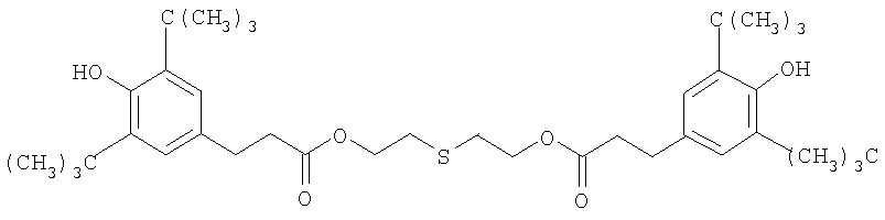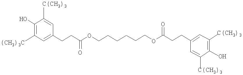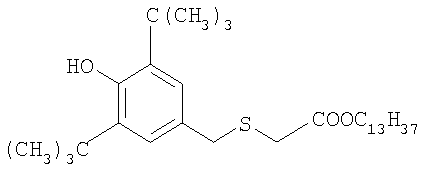 Высокотемпературное старение и механические испытания Из сшитых пластин вырубают стандартные образцы для испытания на разрыв (с размерами, соответствующими требованиям стандарта DIN 53-504-82) и их разделяют на четыре группы для термического старения при 150°С в течение 0, 3, 10 и 14 дней. Эти стандартные образцы для испытания на разрыв оценивают по сохранению предела прочности при разрыве и относительному удлинению (текучесть; разрыв). Все данные (таблицы 3 и 4) находятся в стандартном диапазоне предполагаемых для данной цели применения результатов. Пониженная миграция стабилизаторов к поверхности Изучают поведение жидких систем в сравнении с твердыми системами. Высокая тенденция миграции стабилизаторов к поверхности полимера может обусловить возникновение различных проблем, таких, как потеря акцепторов активных радикалов и приобретение поверхностью гранул липкости, вызывающей комкование при хранении. Известно также, что выпотевание стабилизаторов и пероксидов оказывает негативное влияние на процесс шприцевания и качество изготовляемого кабеля, а образующаяся в результате выпотевания пыль способна забивать фильтры и служить причиной скольжения и нестабильности процесса шприцевания. В данном примере сопоставляются характеристики выпотевания или миграции к поверхности в разных системах после кондиционирования при 55°С. Образцы как по изобретению А, так и по изобретению Б демонстрируют впечатляющее улучшение характеристик совместимости с полимером. Это дает переработчику еще одну благоприятную возможность увеличивать или создавать дополнительные нагрузки, если это уместно, главным образом когда требуется повышенная устойчивость к преждевременной вулканизации, не ожидая возникновения серьезных проблем, связанных с выпотеванием. Для имитации условий выпотевания антиоксиданта каждую композицию выдерживают в сушильном шкафу при 55°С. Через выбранный соответствующим образом интервал из сушильного шкафа извлекают аликвоту образца и определяют степень миграции к поверхности. Образцы промывают метиленхлоридом (примерно 15-секундный контакт с полимером), после чего раствор переносят к круглодонную колбу и выпаривают досуха. Полученный остаток вновь растворяют с использованием стандартного раствора и количественно анализируют жидкостной хроматографией.