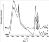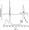 Фиг.1 показывает ИК-Фурье спектр исходной смеси ПВА-АГЭ и продукта их реакции. Спектр получен от пленки на ZnSe подложке.