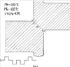 Штампованная поковка коленчатого вала из стали 45Х. Диаметр коренной шейки 80 мм, диаметр шатунной шейки 70 мм, радиус галтели 6 мм, длина коленчатого вала 750 мм. Максимальные изгибные напряжения в области галтелей. Припуск на механическую обработку 6 мм. Для достижения 200°С на глубине 6 мм при охлаждении в воде после аустенитизации необходима выдержка 50 секунд и с этой температуры поковка отпускается при 540°С. Температура на глубине припуска 6 мм – 200°С, затем немного повышается за счет тепла сердцевины, далее за счет нагрева в отпускной печи. Температура сердцевины в зоне перекрытия шеек 450°С. В момент подачи поковки в отпускную печь температура на глубине 6 мм – 230°С, в сердцевине – 400°С.