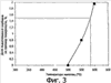 Фиг.3 показывает влияние температуры намотки на долю выделившихся карбидов на единицу поверхности.