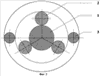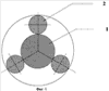 На фиг.1 изображено поперечное сечение электропроводящей заготовки, состоящей из углеродной нити 1, равномерно обкрученной тремя металлизированными нитями 2. На фиг.2 показано поперечное сечение комбинированной электропроводящей нити, в которой электропроводящая заготовка равномерно обкручена нитями Русар 3.