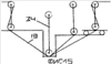 50. Пильная стойка по п.49, отличающаяся тем, что направляющий нижний шкив расположен так, что ось его вращения пересекает ось штанги, а на штанге дополнительно закреплен шкив меньшего диаметра, направляющий канат по касательной нижнего шкива на ось штанги, проходящей по касательной малого шкива.