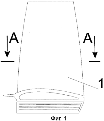 На фиг.2 показан поперечный разрез пера лопатки фиг.1 по А-А.