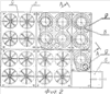 Завихритель потока 3 выполнен лопаточным с центральной втулкой 11 и закреплен на приемном конусе 6. Приемный конус 6 снабжен щелями 12 для прохода очищенного воздуха. Пылесборный поддон 4 присоединен к корпусу 1 при помощи шпилек и гаек, которые на чертеже не показаны. Приемные конусы прикреплены к пылесборному поддону 4 сваркой, если выполнение из металла, клеем, если выполнение из пластмассы. Моноблоки 9 могут быть собраны и жестко соединены между собой, например на доске 13 с помощью винтов, которые на чертеже не показаны, либо любым иным способом.