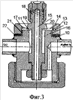 Резонатор может быть выполнен в виде тороидальной полости (на чертеже не показано), ось которой расположена соосно корпусу 10, а полость соединена, по крайней мере, одним калиброванным отверстием 20 с кольцевой щелью 17, образованной торцевыми плоскостями корпуса и кольца со стороны конической поверхности.