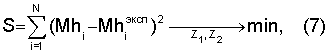 Параметрическая идентификация коэффициентов Z1 и Z2 модели (1) осуществляется минимизацией критерия