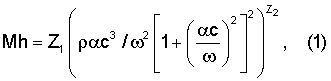 где Mh – вязкость по Муни, ед. Муни; – плотность полимера, кг/см3; с – скорость ультразвука, м/с; – коэффициент затухания ультразвука, м-1; – частота ультразвуковых колебаний, с-1.