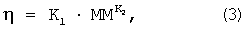 Связь эффективной вязкости с молекулярным весом полимера выражается уравнением Марка-Куна-Хувинка [Малкин А.Я., Куличихин С.Г. Реология в процессах образования и превращения полимеров. / М.: Химия, 1985. – 240 с].
