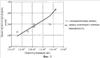 Пример. Для образцов марки СКС-30 АРК M15 толщиной 2 мм, прозвучиваемых на частоте 0,6 МГц с амплитудой 28 В, в результате параметрической идентификации модели (1) были получены значения коэффициентов P=3,01·10-24, m=3,812. Коэффициент множественной корреляции равен 0,923, средняя абсолютная ошибка 12,388 кгс/см2, средняя относительная ошибка 9,081%, что говорит о тесной корреляционной связи и высокой точности определения предела прочности при разрыве. Экспериментальные и расчетные графики зависимостей передела прочности при разрыве от величины коэффициента затухания и скорости ультразвука приведены в таблице 1 и на фиг.2 и 3 соответственно.
