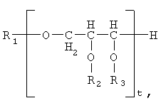 в которой t обозначает целое число, в которой все R1, R2 и R3 независимо выбраны из группы, включающей ацильную группу и атом водорода, в которой не менее чем один из R1, R2 и R3 обозначает Н или ацильную группу (короткую ацильную группу), содержащую от 2 до 6 атомов углерода, в которой не менее чем один из R1, R2 и R3 обозначает необязательно обладающую разветвленной цепью ацильную группу (длинную ацильную группу), включающую насыщенную цепь, содержащую от 10 до 20 атомов углерода и необязательно гидрофильную боковую группу.