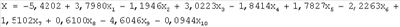 Х=-5,4202+3,7980х1-11,1946x2+3,0223х3-1,8414х4+1,7827х5-2,2263х6+1,5102x7+0,6100х8-4,6046х9-0,0944х10,
