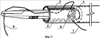 Устройство О.Б.Оспанова для эндохирургического прошивания и лигирования в рабочей части (по фиг.1) содержит наружную трубку 1 с двумя боковыми продольными прорезями 2, иглодержатель 3. Между наружной трубкой 1 и иглодержателем 3 размещен узлотолкатель 4. Между браншами 5 иглодержателя 3 располагается игла 6 с атравматическим типом крепления нити 7. Привод устройства О.Б.Оспанова для эндохирургического прошивания и лигирования на фигурах не показан.