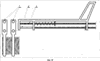 Фиксирующий стержень 3 состоит из корпуса 33, рабочей части 36, центральной части 37 и рукоятки 38. На рабочей части 36 фиксирующего стержня установлены нижние 34 и верхние 35 ограничители, расположенные соответственно на нижней и верхней полуокружности рабочей части 36 стержня. На центральной части 37 фиксирующего стержня установлен ограничитель пружины 39.