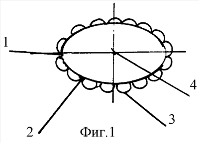 Устройство формирования опорно-двигательной культи при эвисцерации, содержащее полую замкнутую криволинейную оболочку из биологически инертного биосовместимого материала. Устройство выполнено в виде разнородной поверхности 1 (Фиг.1), образованной пересечением нескольких поверхностей, одна из которых является базовой и представляет собой трехосный эллипсоид 2 (Фиг.1-2). Остальные поверхности являются равновеликими эллипсоидами вращения 3 (Фиг.2) и пересекаются с базовой поверхностью, обращены выпуклостью в сторону, противоположную центру 4 трехосного эллипсоида. Причем центры эллипсоидов вращения 3 расположены на одинаковом расстоянии друг от друга. Отношение длины большой оси эллипсоидов вращения 3 к длине большой оси трехосного эллипсоида 2 лежит в интервале от 0,066 до 0,11.