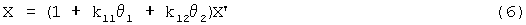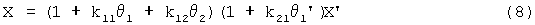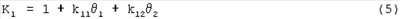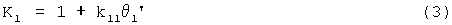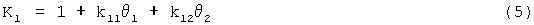 Пренебрегая возможными термами более высокого порядка, можно модифицировать сформулированное в уравнении (3), зависимое только от температурного измерительного сигнала 1 правило расчета значения К1 поправки следующим образом: