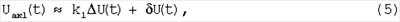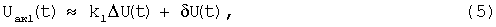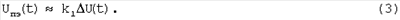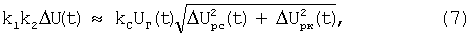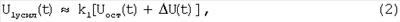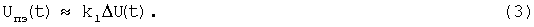 Для устройства прототипа (в предположении, что его фильтр верхних частот реализован на операционном усилителе, имеет типовой для схемы дифференциатора коэффициент передачи, равный единице, и при этом осуществляется эффективная фильтрация составляющей Uост(t), когда Uост(t)<< U(t)) напряжение на входе порогового элемента регистрирующего блока будет определяться зависимостью