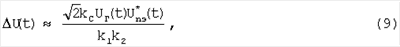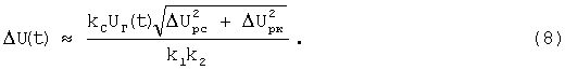где U(t) – некомпенсированный остаток фоновой составляющей Uост(t), его величина при указанной реализации элементов предлагаемого устройства, как уже указывалось, на 60-80 дБ меньше k1Uост(t) на выходе первого полосового усилителя.