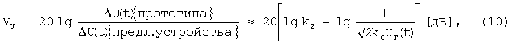 Для корректного сравнения эффективности предлагаемого устройства и прототипа считаем, что коэффициенты передачи фильтров 12 и 13 верхних частот, линейных выпрямителей 14, 15 и сумматора 16 предлагаемого устройства равны единице, а регистрируемые напряжения