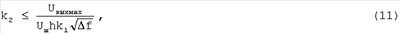 Поскольку влияние собственных шумов на выходной сигнал второго полосового усилителя 11 предлагаемого устройства уже незначительно, то напряжение на его выходе описывается соотношением