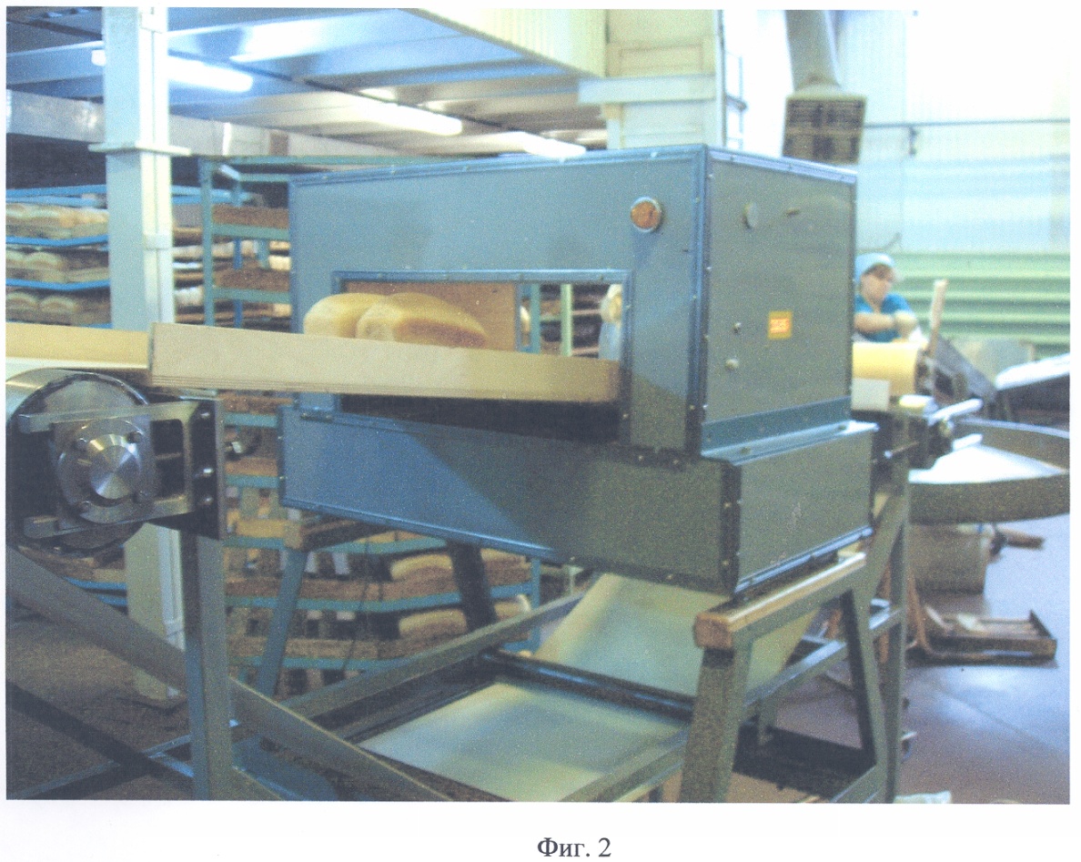 Достоверность приведенных технических характеристик экспериментально подтверждена в изготовленных на производственной базе ЗАО «Центр информационной безопасности» опытных образцах конвейерных металлодетекторов «КМП-1», установленных на постоянную эксплуатацию в продовольственной компании «Сибирский берег» и предназначенных для обнаружения мелких металлических включений в хлебобулочных изделиях в технологическом цикле производства сухариков-кириешек. Внешний вид металлодетектора «КМП-1» в составе специально разработанной для этого конвейерной линии представлен на фотографии (см. фиг.2).