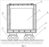 На фиг.3 изображена установленная на тележки 7 сформированная транспортная упаковка с основанием 4, вертикальными переборками 8 и крышкой 9, с размещенным внутри нее радиоактивным блоком 2.