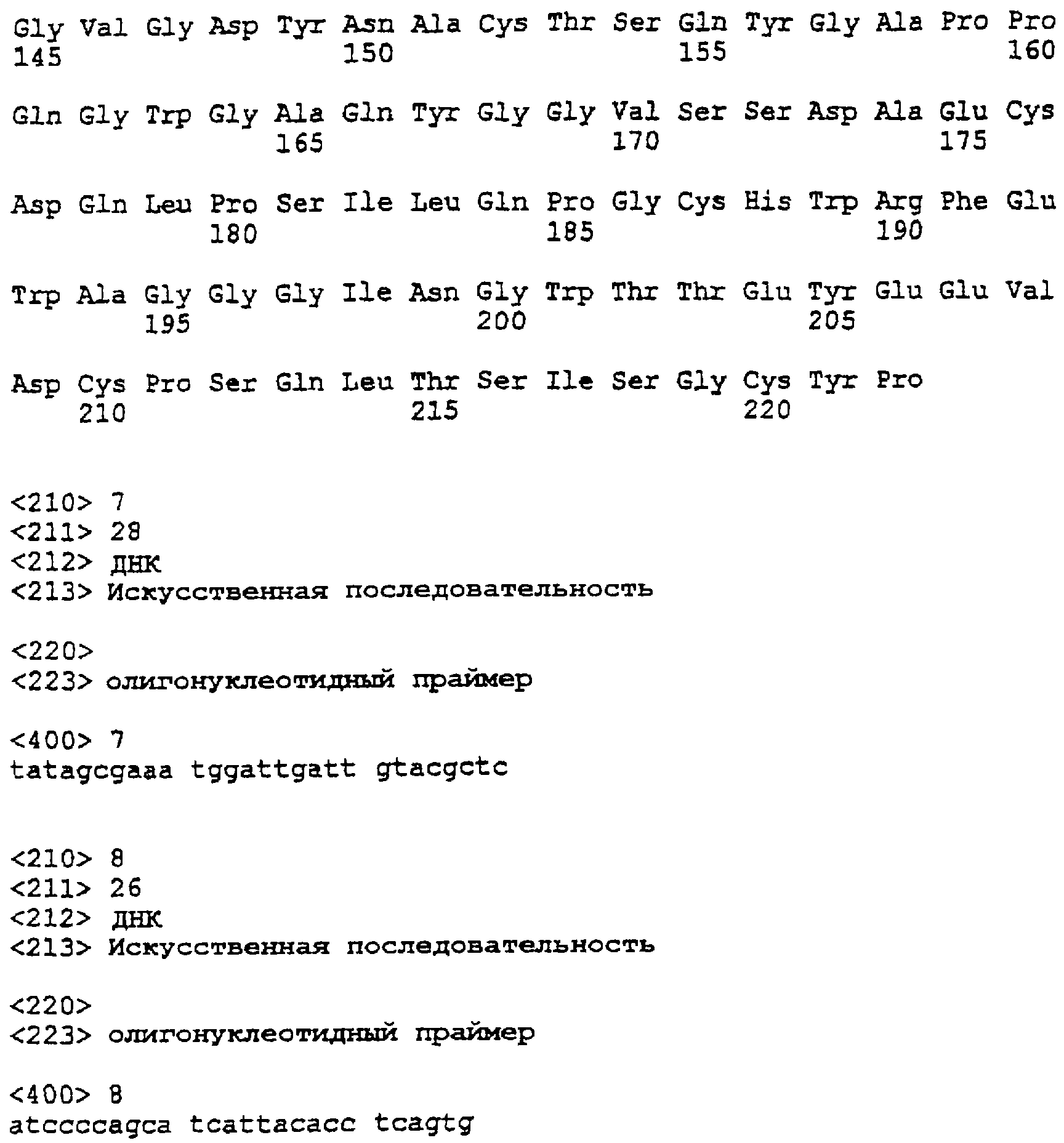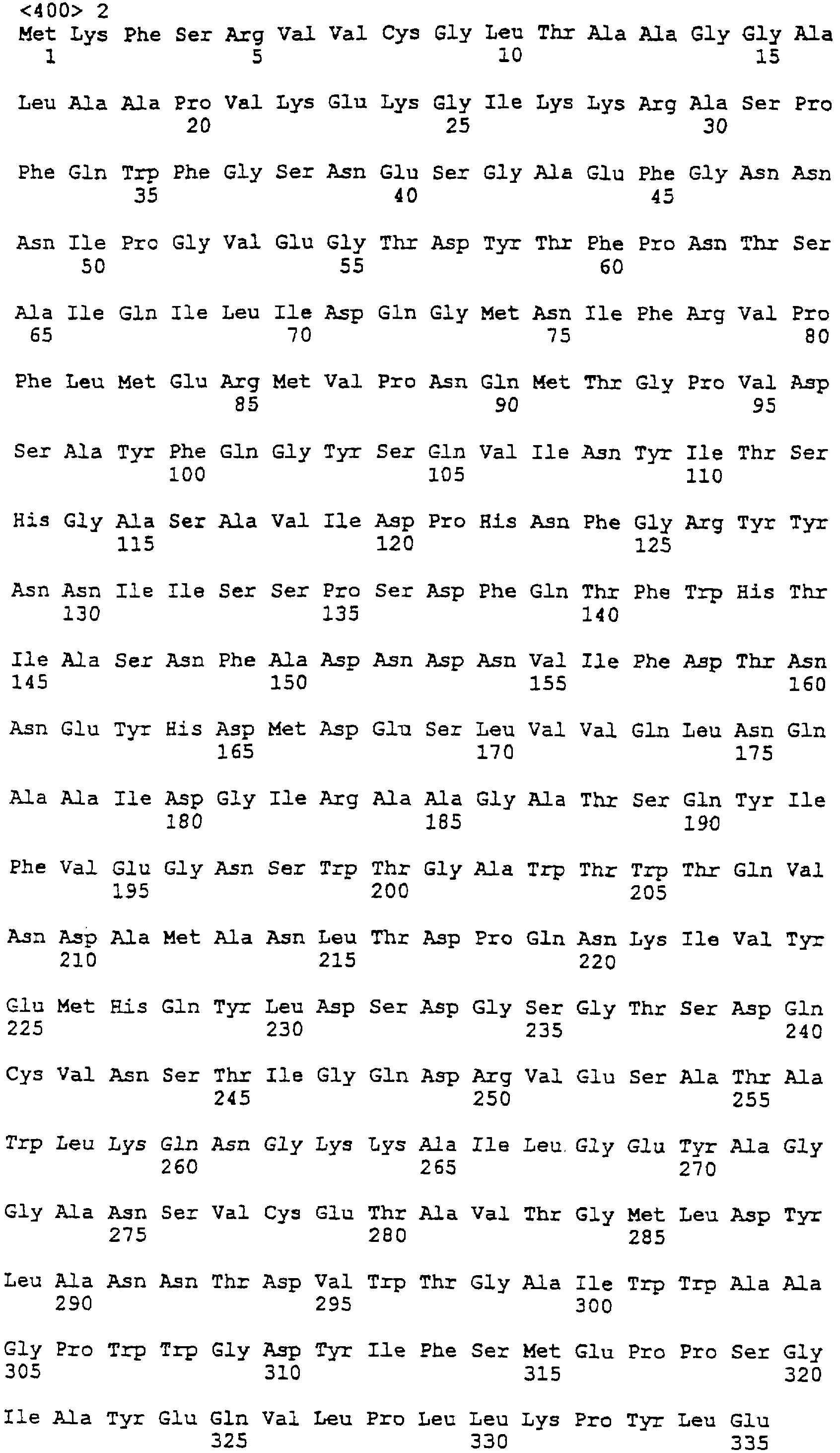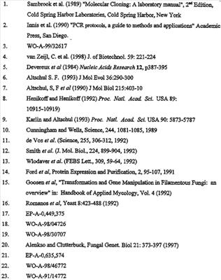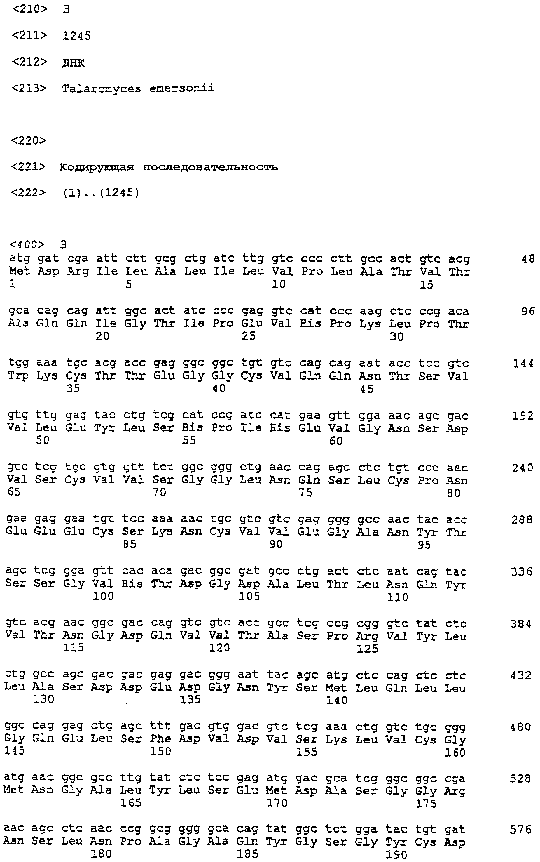 Более короткие полипептидные последовательности входят в рамки изобретения. Например, считается, что пептид длиной, по меньшей мере, 50 аминокислот или до 60, 70, 80, 100, 150 или 200 аминокислот входит в рамки изобретения при условии, что он проявляет основные биологические функции Модификации Полипептиды согласно изобретению могут быть химически модифицированными, например модифицированными пост-трансляционно. Например, полипептиды могут быть гликозилированы (один или несколько раз, одним и тем же или разными сахарами) или содержать модифицированные аминокислотные остатки. Их также можно модифицировать присоединением остатков гистидина (чтобы обеспечить их очистку) или присоединением сигнальной последовательности (чтобы обеспечить встраивание в мембрану клеток). Полипептид может иметь одно или несколько удлинений (N)-амино- или (С)-карбоксильных концов, таких как аминоконцевой остаток метионина, небольшой линкерный пептид длиной примерно до 20-25 остатков или (небольшое) удлинение, которое облегчает очистку, такое как полигистидин или Т7-метка, антигенный эпитоп или связывающий домен (например, мальтозу)14 (например, на С-конце). Указанные удлинения можно присоединять посредством линкера или без него. Полипептид изобретения можно метить регистрируемой меткой. Регистрируемой меткой может быть любая подходящая метка, которая позволяет выявить полипептид. Подходящие метки включают радиоизотопы, например 125I, 35S, ферменты, антибиотики, полинуклеотиды и линкеры, такие как биотин. Полипептиды могут быть модифицированы таким образом, чтобы они содержали аминокислоты неприродного происхождения или чтобы повысить стабильность полипептида. В том случае, когда белки или пептиды получают синтетическими способами, такие аминокислоты можно вводить во время получения. Белки или пептиды также можно модифицировать после получения синтетическим или рекомбинантным способом. Полипептиды согласно изобретению также можно получить с использованием D-аминокислот, или они могут содержать D-аминокислоты (одну или несколько). В данной области известен ряд модификаций боковых цепей, и такие модификации можно осуществить по отношению к боковым цепям белков или пептидов согласно данному изобретению. Такие модификации включают, например, модификации аминокислот восстановительным алкилированием в результате реакции с альдегидом с последующим восстановлением NaBH4, амидированием метилацетимидатом или ацилирование уксусным ангидридом. Последовательности, представленные в данном изобретении, также можно использовать в качестве исходных материалов для конструирования ферментов “второго поколения”. Глюканазы “второго поколения” являются глюканазами, измененными способами мутагенеза (например, сайт-направленного мутагенеза), которые обладают свойствами, отличными от свойств глюканаз дикого типа или рекомбинантных глюканаз, таких как глюканазы, получаемые согласно данному изобретению. Например, оптимум температуры или рН, удельная активность, сродство к субстрату или термостабильность можно изменять для того, чтобы они лучше подходили для применения в определенных способах. Аминокислоты, необходимые для проявления активности глюканаз согласно изобретению и поэтому предпочтительно подлежащие замене, можно идентифицировать согласн