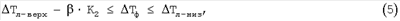 Регулирующее воздействие оказывается при отклонении среднего значения линейной плотности по результатам замеров датчика в стеке от номинального значения линейной плотности на величину, большую или равную значению верхнего или нижнего поля допуска линейной плотности ленты. Необходимо обосновать верхнее или нижнее поле допуска, в пределах которых фактическая линейная плотность ленты не приведет к отклонению фактической линейной плотности пряжи за пределы ее полей допуска. Пределы допуска на линейную плотность пряжи регламентируются ГОСТом или иным нормативным документом. Например, ГОСТ 1119-80 «Пряжа хлопчатобумажная» предусматривает для пряжи линейной плотностью 50 текс верхнее поле допуска +2,0%, а нижнее – 2,5% от номинальной линейной плотности, что составляет соответственно +1,0 текс и -1,25 текс. В соответствии с планом прядения известна общая вытяжка полуфабрикатов от ленты до пряжи (Ел-п), которая примерно равна 100. Следовательно, поле допуска ленты должно быть пропорционально Ел-п. Планом прядения после кардочесальных машин предусматривается ленточный переход, который включает последовательную переработку ленты на двух и более ленточных машинах. За счет сложения лент на ленточных машинах происходит выравнивание линейной плотности пропорционально где