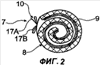 На Фиг.2 – сильно схематизированное изображение первого варианта устройства, предлагаемого в изобретении, с держателем, свернутым, по меньшей мере приблизительно, в спираль;