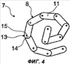 На Фиг.4 – сильно схематизированное изображение второго варианта устройства, предлагаемого в изобретении, с держателем, свернутым, по меньшей мере приблизительно, в спираль и состоящим из нескольких жестких, шарнирно связанных между собой сегментов; и