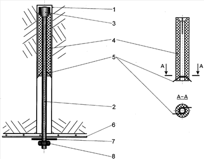 Недостатком данного анкера является сложность конструкции при многооперационности изготовления элементов, включающей механическую обработку, что приводит к общему удорожанию конструкции. Также при транспортировании втулок из гранулированного материала к месту выполнения работ возможно их механическое повреждение вследствие пластических деформаций клеевого материала, что требует дополнительных охранных мероприятий.