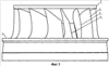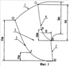 На фигуре 2 схематично показан вид сверху на перо лопасти 3. Как видно из чертежа точка C1 расположена впереди по направлению вращения от точки М, а точка В1 в направлении хода вращения расположена позади точки C1 или лежит в одной радиальной плоскости с нею. Соответственно часть входной кромки, расположенной между точкой М и точкой B1, имеет наклон от ступицы к ободу по направлению вращения, то есть точка B1 присоединения входной кромки лопасти к ободу расположена впереди по направлению вращения от точки М.