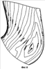 На фигуре 5 приведена картина распределения давления на стороне низкого давления пера лопасти, полученная на основании решения задачи 3-мерного течения в турбине в режиме максимального кпд турбины для прототипа.