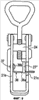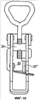 Рычажные замки по данному изобретению базируются на обычной конструкции замка. Такой рычажный замок описан со ссылками на фиг.1-4. Он содержит пластину 20 основания, предназначенную для крепления к объекту А, который должен быть прижат к объекту В. Замок содержит также рычаг 21 и захватный элемент 22. Рычаг 21 установлен с возможностью поворота на заклепках 23а, 23b в отстоящих друг от друга кронштейнах 20а, 20b, которые отходят от пластины 20 основания. Первый конец 22а захватного элемента 22 снабжен резьбой и ввинчивается во внутреннюю резьбу цилиндрического тела 24, которое связано с рычагом 21 и находится на некотором расстоянии от заклепок 23а, 23b. Точнее, цилиндрическое тело 24 установлено между разнесенными сторонами 21а, 21b рычага 21 с возможностью поворота с помощью укрепленных в указанных сторонах штырей 25. На свободном конце захватного элемента 22 образована петля 22b для зацепления крюкового конца 26 зацепа 26, прикрепленного к объекту В. Часто предусмотрен дополнительный кронштейн 27, выполненный заодно с пластиной основания и снабженный отверстием 28, которое находится на одной линии с отверстием 29 в рычаге 21 в закрытом положении рычажного замка для запирания рычага с пластиной основания с помощью висячего замка.
