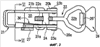Пластинчатая пружина 30 выполнена удлиненной, а ее основная плоскость в нормальном, ненапряженном состоянии проходит вдоль внутренней поверхности стороны 21а. В пружине около одного из ее концов выполнено отверстие 32 и другое отверстие 33, расположенное на расстоянии от первого. Указанный конец пружины прикреплен к стороне 21а с зажимом, с одной стороны, между внутренним концом стороны и расклепанным внутренним концом 23а заклепки 23а, проходящей через отверстие 32, и, с другой стороны, цилиндрическим телом 24, штырь которого проходит через отверстие 33.