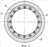 В качестве антифрикционной детали выбрана фторопластовая пластина толщиной 0,3÷0,5 мм (из технологических возможностей) с цилиндрическими выступающими элементами высотой 3÷5 мм (максимальный допускаемый износ с учетом запаса) с параллельными поверхности трения надрезами в средней части по высоте цилиндрических фторопластовых элементов и конусообразными полостями внутри цилиндрических элементов и выходящими на поверхность трения. Диаметр и шаг цилиндрических элементов выбирается исходя из условия обеспечения перекрытия фторопластовым элементом минимального возможного перемещения в паре трения. Диаметр фторопластовых цилиндрических элементов составляет 2÷3 мм с шагом 2,5÷4 мм для обеспечения необходимого угла намотки жгута (20÷30°), для обеспечения достаточной прочности пластины в кольцевом и радиальном направлении и обеспечения примерно одинакового коэффициента линейного расширения в тех же направлениях.