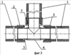 Задача, решаемая изобретением, заключается в создании соединительных деталей для трубопроводов, применяемых для изменения направления трубопроводов, обеспечивающих прочность и герметичность соединения труб под высоким давлением, до 1,8 МПа (18 атм), предотвращения возможности разрушения в местах изменения направления трубопровода (в местах отвода от трубопровода), а также простоте монтажа и уменьшении времени на монтаж трубопровода. Соединение фитингов с трубами происходит сваркой встык с упрочнением муфтами, что обеспечивает более надежное соединение.