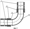 На фиг.2 изображен продольный разрез предлагаемого фитинга, металлический корпус которого изогнут под углом 45°.