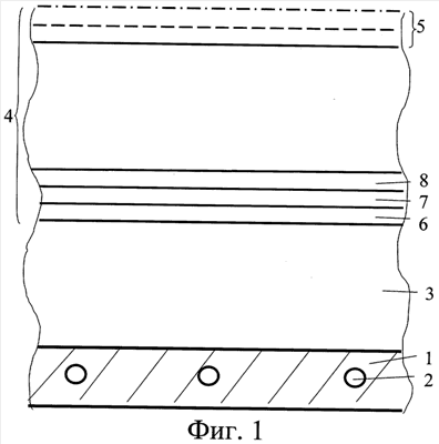 На фиг.1 в верхнем слое 5 пунктиром условно показана толщина этого слоя после машинного строгания, а штрих-пунктиром – толщина этого слоя 5 после подливки воды. Машина для строгания и подливки воды может быть такой, как описано, например, в патенте США №4312142 (опубл. 26.01.1982) и заявке РСТ №WO 2004/092485 (опубл. 28.10.2004).