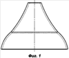 Поэтому вместо верхней конической части облицовки необходимо использовать рупорообразную форму, а в нижней части у основания полусферическую форму (фиг.1). Использование такой облицовки позволяет при ограниченных размерах кумулятивных зарядов повысить пробитие на 100-200 мм, так как появилась возможность управления длиной кумулятивной струи и градиентом скорости по ее длине.
