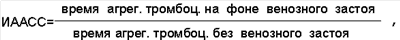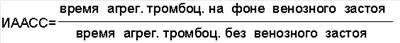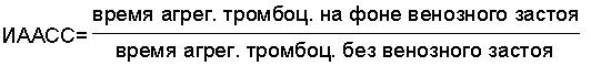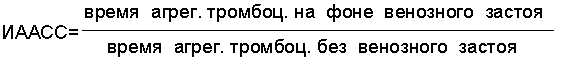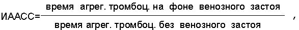Способ раннего выявления ослабления антиагрегационной активности сосудов, отличающийся тем, что антиагрегационную активность сосудов определяют путем проведения реакции тромбоцитов по 2-3 раза с каждым индуктором – АДФ, коллагеном и тромбином, после чего рассчитывают индекс антиагрегационной активности сосудистой стенки (ИААСС) для каждого индуктора по формуле а затем определяют комплексный антиагрегационный индекс стенки сосудов (КАИСС) путем вычисления среднего арифметического значения ИААСС для всех трех индукторов и при значении КАИСС 1,50-1,68 диагностируют отсутствие снижения антиагрегационной активности сосудистой стенки, что не требует лечебных вмешательств; при значении КАИСС в интервале 1,41-1,49 больные входят в группу риска по развитию снижения антиагрегационной активности сосудистой стенки и нуждаются в ежемесячном наблюдении врача с обязательным оздоровлением образа жизни; при значении КАИСС 1,40 и ниже имеется снижение антиагрегационной активности сосудистой стенки, требующей коррекции ее состояния.