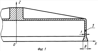 где 1 – кольцевой корпус, 2 – внутренняя боковая режущая пластина, 3 – внешняя боковая режущая пластина, 4 и 5 – торцевые режущие пластины, 6 – пластина с прямолинейной режущей кромкой, 7 – штифт, В – ширина режущей части инструмента, t – ширина кольцевой стенки, – угол наклона осей пластин, образующих торцевые, внешние и внутренние боковые режущие кромки, к вектору направления вращения в торцевой плоскости XOY, – угол наклона пластин, образующих торцевые, внешние и внутренние боковые режущие кромки, к поверхности резания.