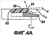 фиг.4А – вид в поперечном разрезе части кассеты с фиг.4, выполненный по линии 4АВ-4АВ, когда кассета находится в первом положении;