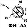 Как показано также на фиг.5А, элемент шелушения 60 имеет особые участки 64, 66 и 68. Когда пользователь с помощью колесика 62 поворачивает элемент шелушения 60, может измениться участок или участки элемента шелушения 60, обращенные к коже пользователя. Например, с помощью колесика 62 пользователь может повернуть элемент шелушения 60 таким образом, что участок 66, который первоначально был обращен к коже пользователя, скрывается, а к коже пользователя теперь обращен участок 68.