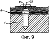 В положении, показанном на фиг.8, центрирующий штифт 4 полностью удален средством 16, после чего избыточный участок 20 покрытия 11 может быть срезан, как показано на фиг.9. Зазор 21, образованный удалением центрирующего штифта, закрывается запечатывающими средствами 22 при этой операции.