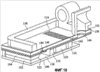 Набор металлических или пластмассовых слоев 124, 126 и 128 простирается поперек принтера. Наверху этого набора размещен слой 130 распорки, выполненный обычно из пластмассы, и металлическая плата 132 фильтра установлена наверху этого слоя распорки. Группа малых отверстий для впуска чернил образована в плате 132 фильтра. Впуск чернил образован через порт 136 с его соответствующей рамкой 138. Порт 138 для выпуска чернил сообщается со сравнительно большим отверстием 140, образованным в плате 132 фильтра и также в слоях 126 и 128 набора. За платой 132 фильтра образована область 142 выреза в слое 130 распорки. Эта область выреза сообщается с коллектором 118 для чернил посредством поперечного паза 144, вырезанного через набор 124, 126 и 128. Из конца печатающей головки, смежного пьезоэлектрическому материалу, в паз 142 простираются пальцы 146. Эти пальцы более четко показаны на фиг.11, и они проходят через слой 130 распорки и три слоя 124, 126 и 128 набора. Вдоль противоположного конца паза 144 образован уступ 148 удалением слоев 124 и 126. Простираясь в направлении назад от этого уступа, поперек элемента 116 перемычки и над интегральной схемой 120 и элементом 114 перемычки, образована траектория выпуска чернил удалением слоя 126. Эта траектория сообщается с отверстием 140. Таким образом, будет видно, что чернила протекают через порт 136 для впуска чернил, через отверстия 134 фильтра, поперек области 142 выреза и через паз 144, по существу, между пальцами 146 и уступом 148. Чернила проходят из коллектора 118 по траектории, определенной удалением слоя 126, к отверстию 140 и порту 138 для выпуска чернил.