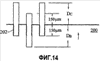 Фиг.14 показывает устройство, в котором образован лишь один слой из двух ранее описанных слоев из пьезоэлектрического материала, им является плата 200 привода. Электроды 202 образованы на стенках платы привода, используя способ направленного вакуумного насаждения. Как показано на фигуре, в результате получено покрытие, простирающееся над различными секциями канала выброса, зависящее от глубины образованного канала в плате привода. Чем больше глубина канала, образованная каналом привода, тем в большей степени электрод простирается за центральный участок канала. Если меньше глубина канала, образованная каналом в плате привода, то покрытие простирается к основанию канала.