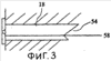 Коллектор 26 для чернил образован выровненными и дополнительными канавками 34 и 36, вырезанными или иначе образованными в соответствующих слоях 32 и 30, каждая из канавок 34 и 36 имеет переднюю кромку 34, 36А, наклоненную под углом приблизительно 45 градусов к направлению 20, плоское основание 34, 36В и задний участок 34, 36С, аналогично наклоненный под углом приблизительно 45 градусов.