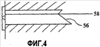 Подачей соответствующих запускающих сигналов к электродам 52 звуковую волну заставляют распространяться вдоль выбранного канала для чернил, что в результате приводит к выбросу капель чернил. Поведение этой звуковой волны в канале для чернил на конце канала, определенного платой 22 сопел и концом канала, определенного коллектором 26, является критическим для правильных и надежных рабочих характеристик печатающей головки. Две группы каналов (то есть, в этом случае каналов с нечетным числом и каналов с четным числом) имеют в результате их соответствующего смещения различные пересечения с коллектором 26 и соответственно различные профили конца канала. Фиг.3 схематически показывает канал с четным числом с его соответствующим профилем 54 конца канала. Фиг.4 аналогично показывает канал с нечетным числом с его соответствующим профилем 56 конца канала. На обеих фигурах 3 и 4 также показана линия 58, обозначающая плоскость пересечения слоев 30 и 32 или центральную плоскость. Следует заметить, однако, что профили конца канала двух групп каналов являются зеркальными изображениями друг друга в этой центральной плоскости. Это имеет очень важный результат, заключающийся в том, что коэффициент звукоотражения двух групп каналов на коллекторе 26 для чернил, по существу, является идентичным поперек всех каналов, несмотря на различные смещения.